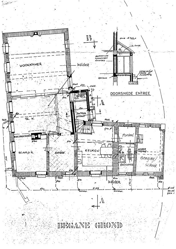 • Ruime kelder (onder de Oost-Westvleugel van het gebouw), welke verdeeld is in 2 ruimten (resp. ca. 12 m2 en 36 m2, maximale stahoogte ca. 1,85 m), bereikbaar vanuit de keuken.