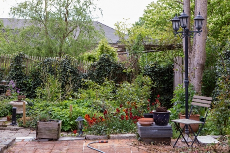 • Geheel omsloten tuin met achterom en terras. Hier bevindt zich tevens de separate entree naar de "vakantiewoning" op de 1e etage, zodat de vakantiegasten niet via de hoofdentree naar binnen hoeven te komen.