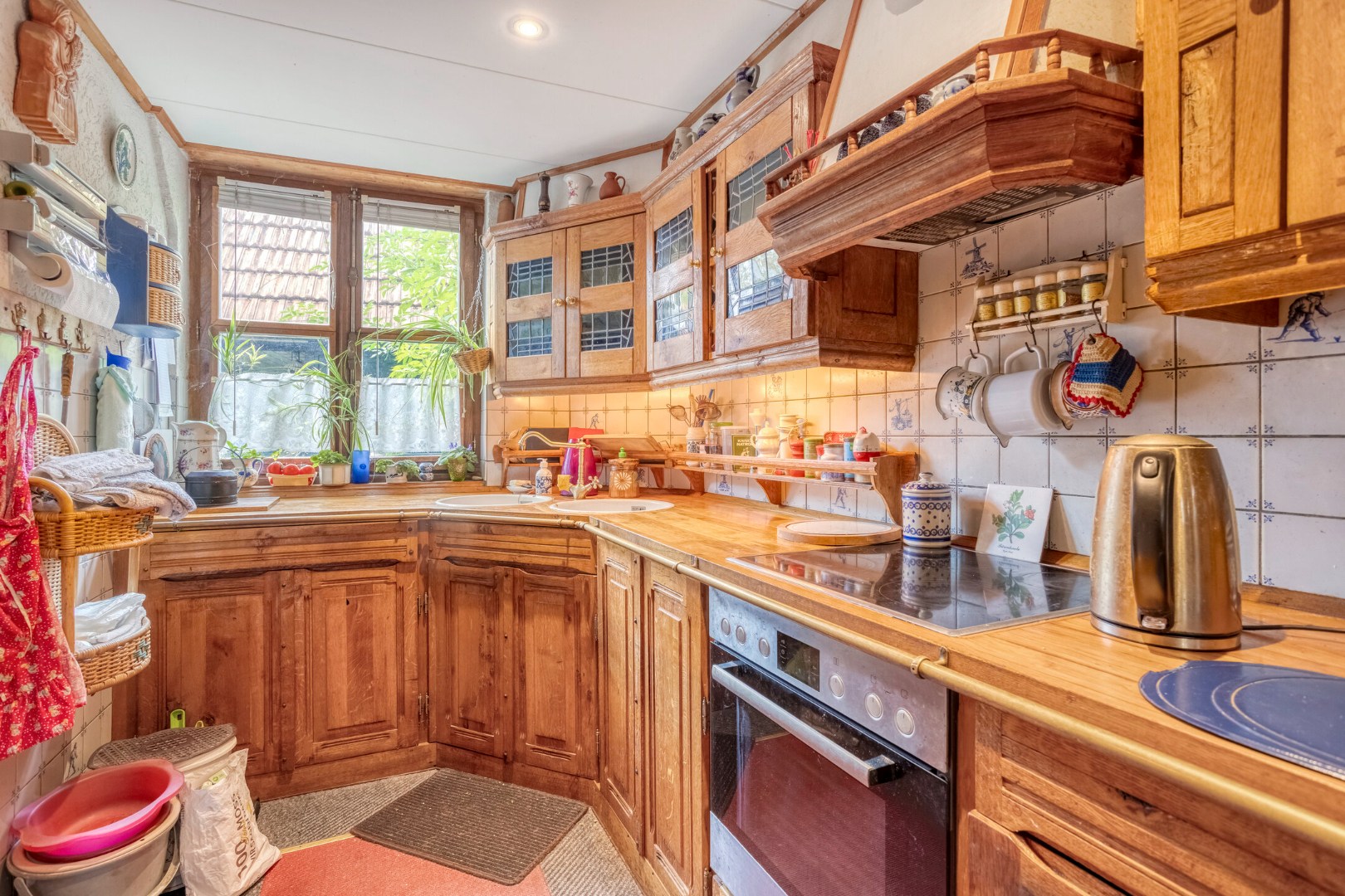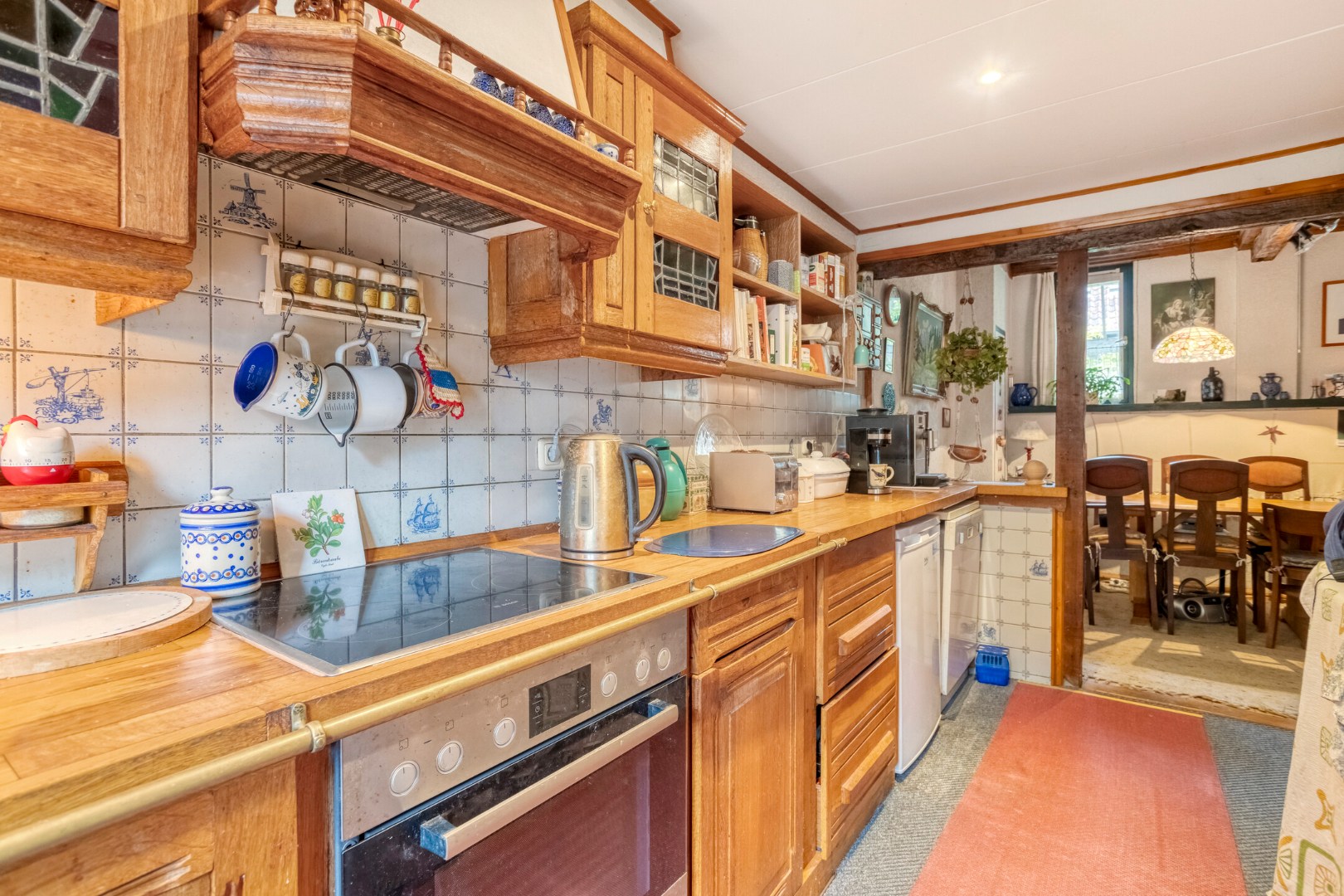 Grenzend aan de hal ligt de keuken, uitgevoerd in een praktische L-opstelling. Het aanrecht is voorzien van een inductiekookplaat, ingebouwde ovencombinatie, losstaande koelkast, vaatwasmachine, spoelbak en volop opbergruimte in kasten en lades. De keuken is functioneel, maar kan naar eigen wens gemoderniseerd worden.