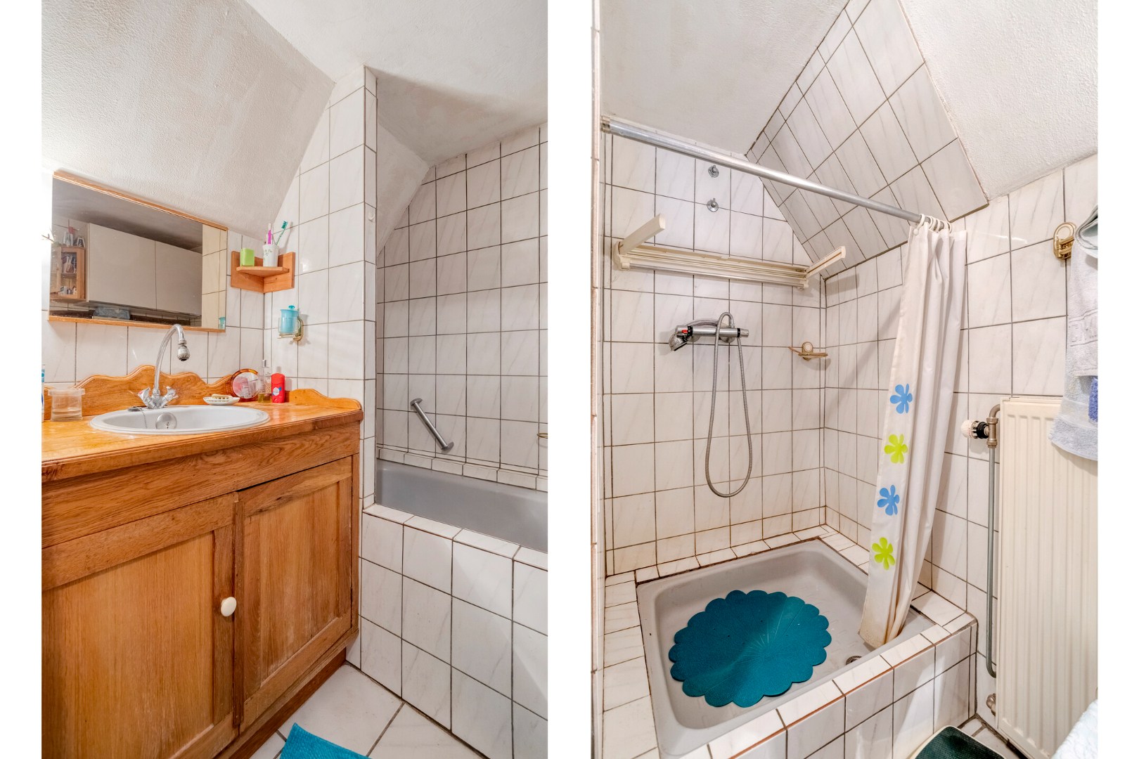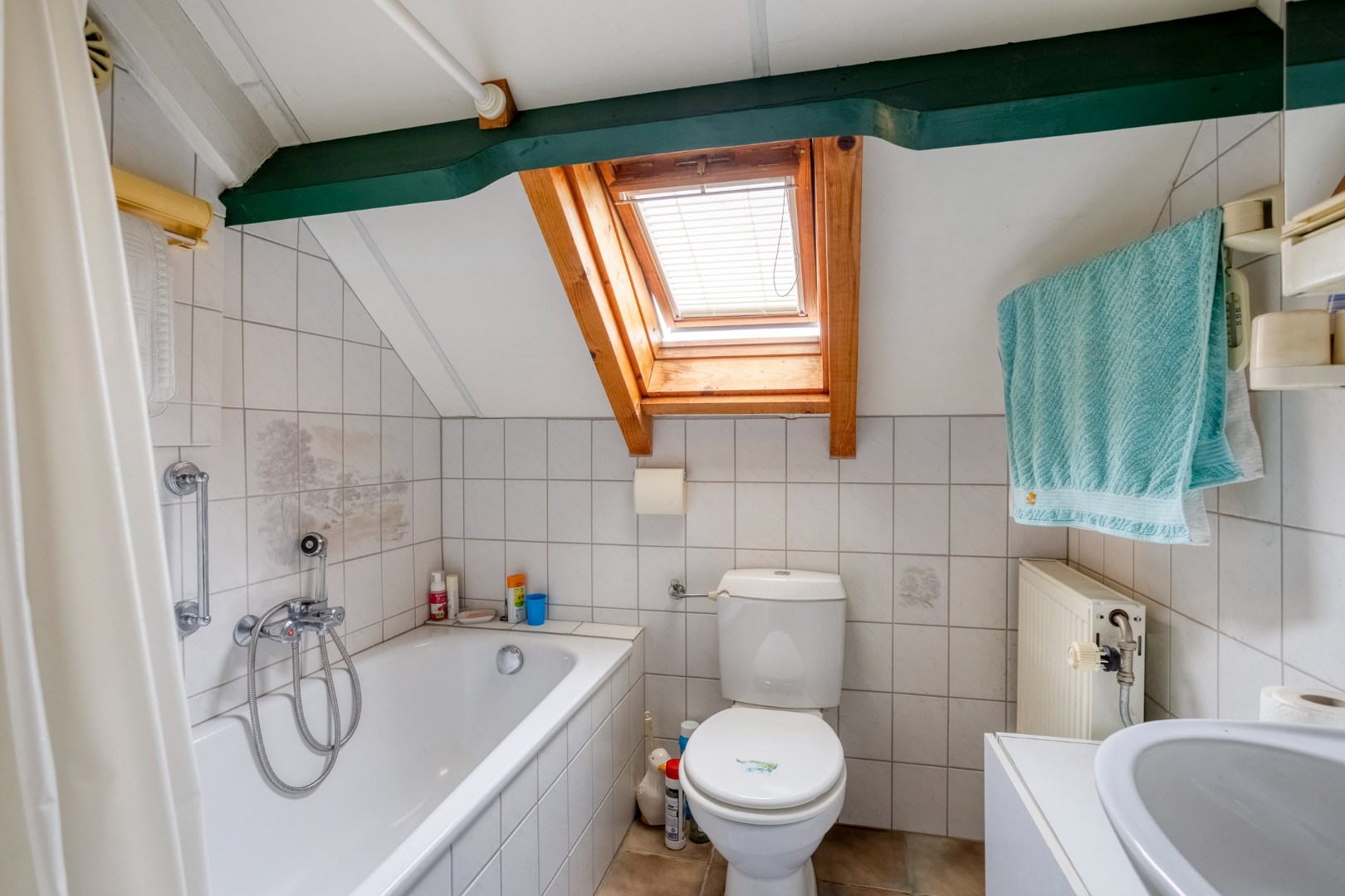 De badkamer op deze verdieping is voorzien van een ligbad, douche, wastafel met spiegel en opbergruimte. Daarnaast bevindt zich op de overloop een separate toiletruimte. De badkamer is netjes onderhouden, maar biedt mogelijkheden om te moderniseren en naar eigen smaak in te richten.
