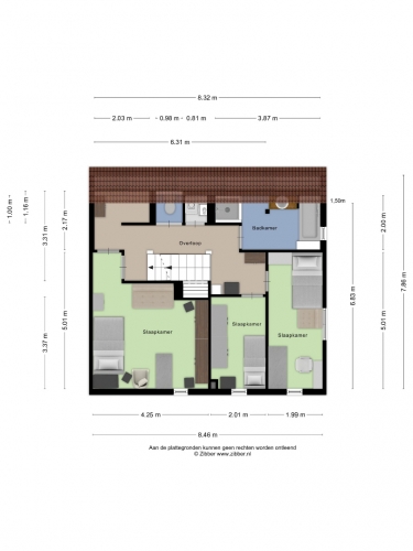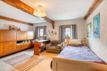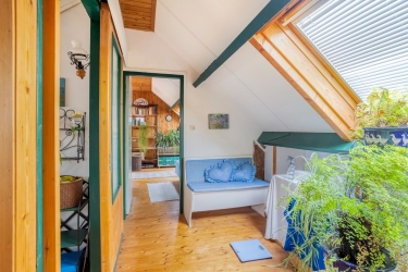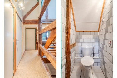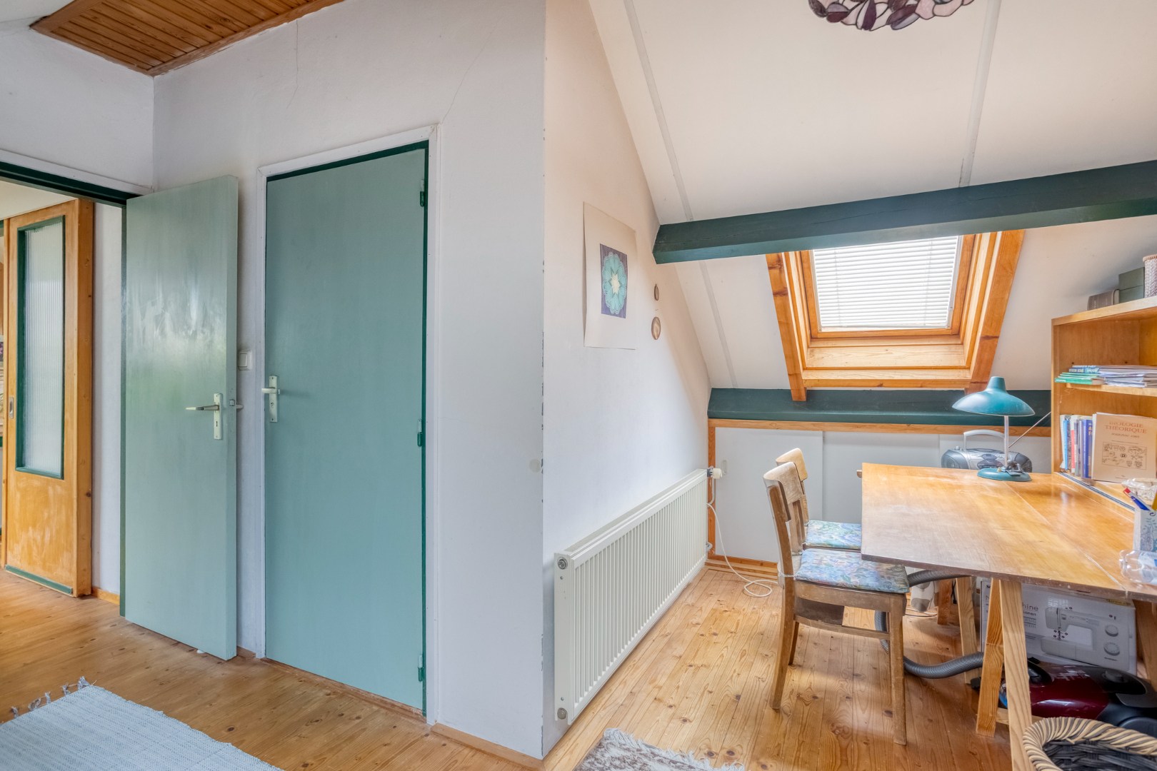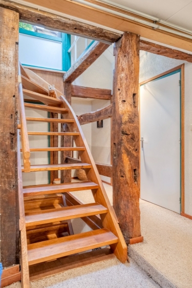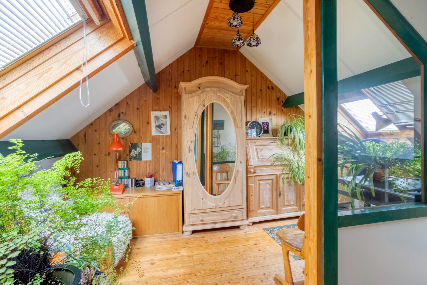De drie slaapkamers op deze verdieping kenmerken zich door hun lichte en karakteristieke uitstraling. Zichtbare houten balken voegen sfeer toe, terwijl de ramen zorgen voor een aangename lichtinval. Elke kamer biedt voldoende ruimte voor een bed, bureau en kastruimte, en is daardoor ideaal als kinder-, werk- of hobbykamer.