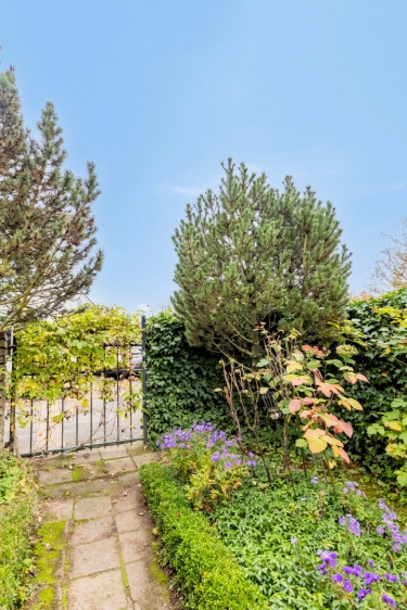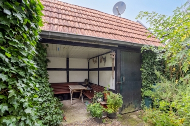 De zonnige, groene voortuin vormt een heerlijke plek om buiten te genieten. De tuin is netjes aangelegd met veel groen en biedt een knusse zitplek waar u kunt ontspannen. Dankzij de gunstige ligging geniet u hier van veel zonuren. Onder de overkapping kunt u beschut zitten of tuinmeubilair opbergen, en de separate berging biedt extra ruimte voor fietsen of gereedschap. De begroeiing rondom de woning versterkt het bijzondere karakter en zorgt voor een natuurlijke overgang tussen woning en landschap.