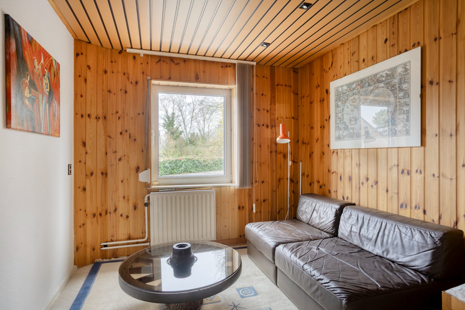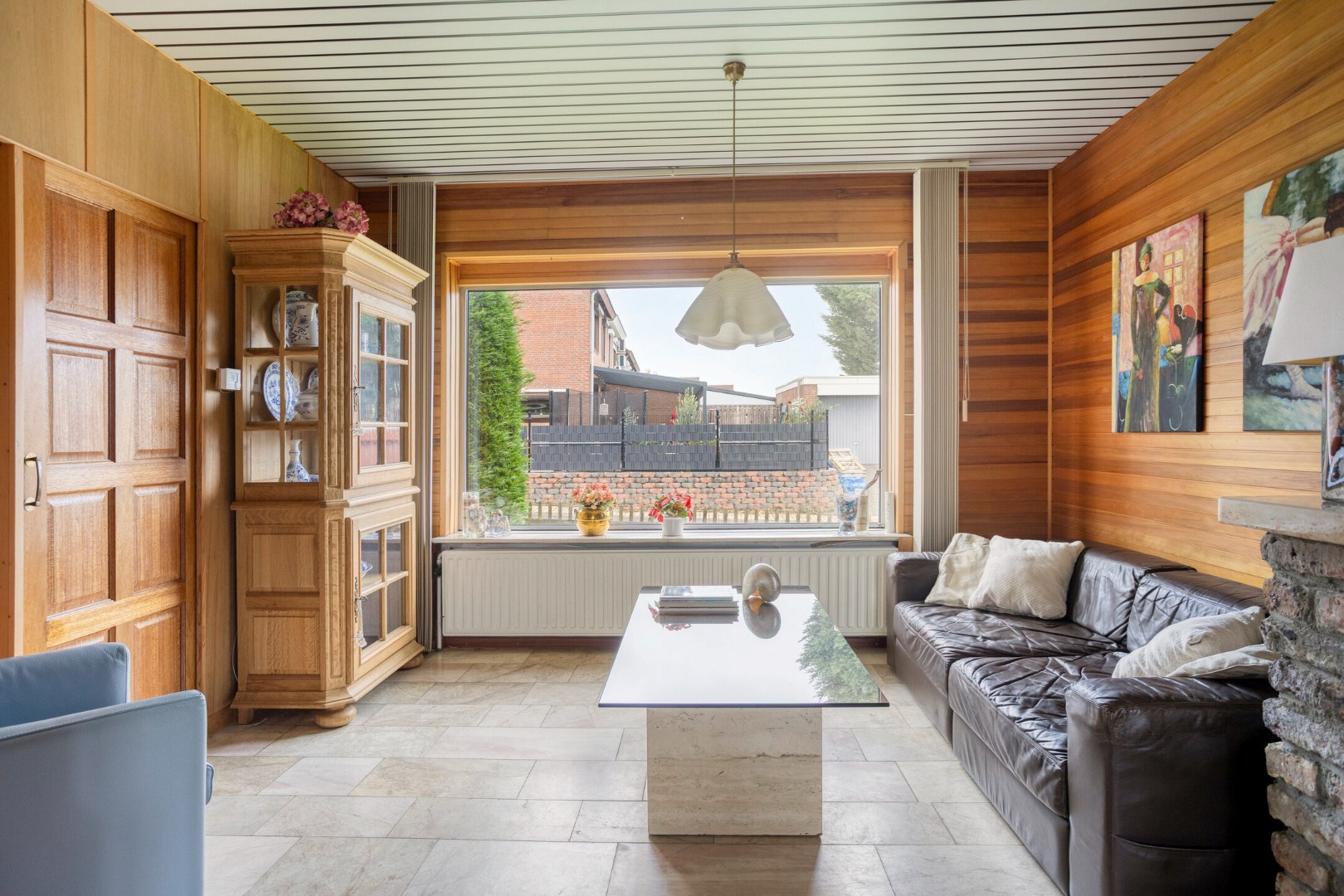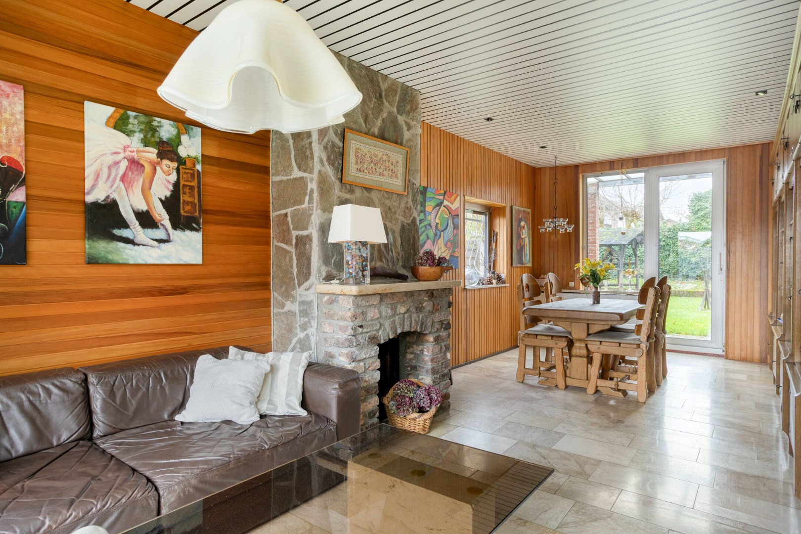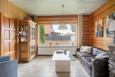 • Knusse woonkamer met haard en schuifpui naar de tuin