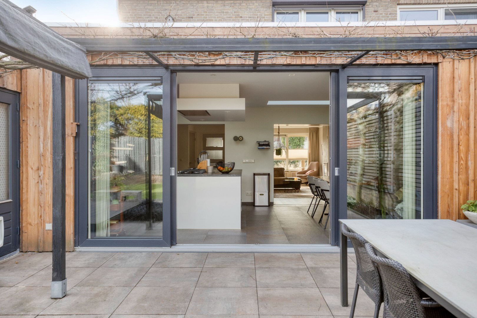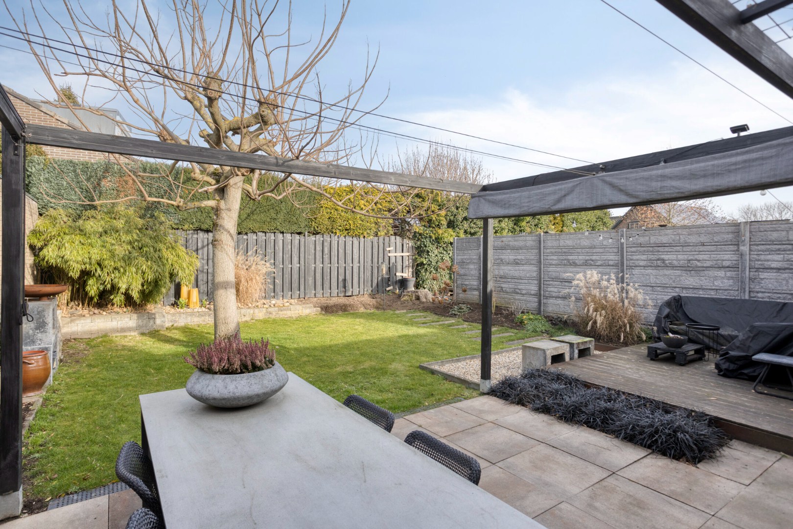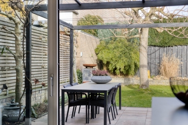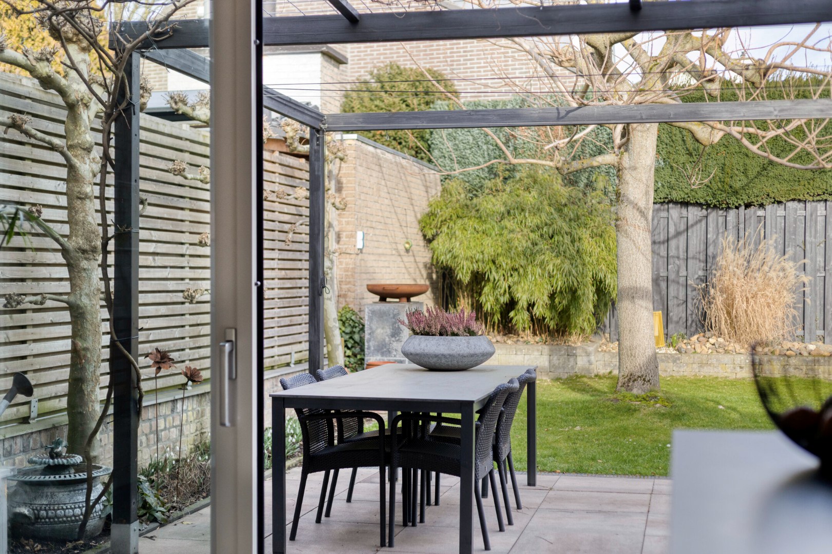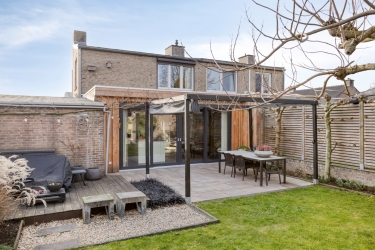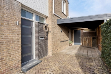 De achtertuin is verzorgd aangelegd en biedt een fijne balans tussen groen en bestrating. Direct aan de woning bevindt zich een ruim terras met pergola, waardoor u hier al vroeg in het jaar comfortabel buiten kunt zitten. Verderop in de tuin zijn meerdere zitplekken gecreëerd, afgewisseld met gazon en beplanting. De tuin is omsloten en biedt veel privacy, wat het geheel tot een prettige buitenruimte maakt voor ontspanning, samenzijn of spelende kinderen. Daarnaast beschikt de woning over een carport en een handige berging op de begane grond.