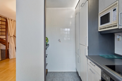 Deze is functioneel en voorzien van een complete aanrechtcombinatie in hoekopstelling met voldoende onder-/bovenkasten en o.a. RVS spoelbak, koelkast, elektrische kookplaat, afzuigkap, magnetron en vaatwasmachine.