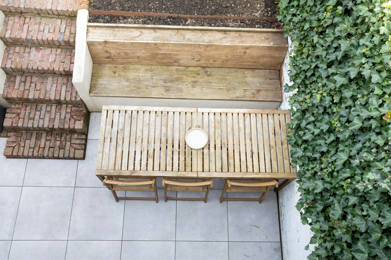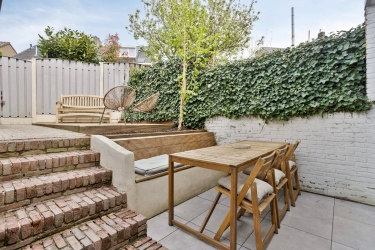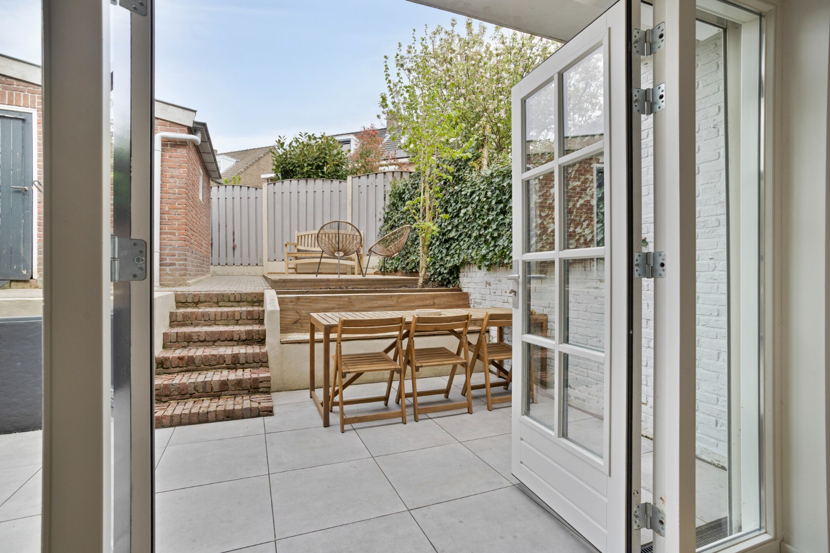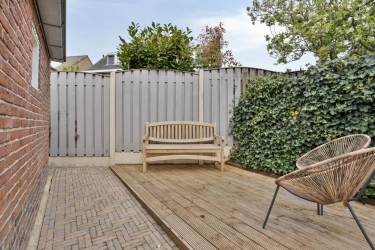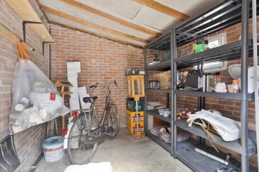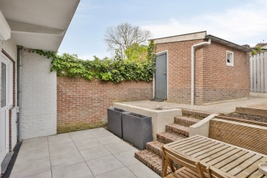 De achtertuin is verzorgd aangelegd en biedt een speels hoogteverschil, wat zorgt voor een levendig geheel. De tuin is deels bestraat en deels voorzien van groen, waardoor u eenvoudig een fijn terras kunt creëren om te ontspannen of gezellig buiten te zitten. Achter in de tuin bevindt zich bovendien een praktische berging, ideaal voor het opbergen van fietsen en tuingereedschap. Via een tuinpoort is de achteruitgang bereikbaar.