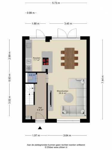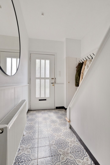 U betreedt de woning via de straatzijde, waar u profiteert van voldoende gratis parkeergelegenheid in de directe omgeving. Eenmaal binnen komt u in de hal. Vanuit hier heeft u toegang tot de toiletruimte, de woonkamer en de trapopgang naar de eerste verdieping en kelder.