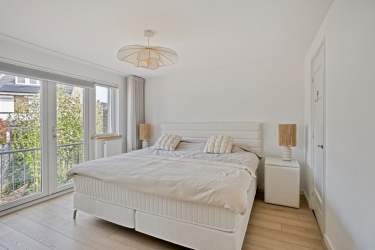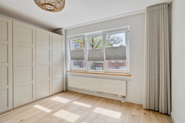 De twee slaapkamers op deze verdieping zijn ruim en veelzijdig in te richten. Dankzij de prettige lichtinval voelen de kamers aangenaam en open aan en bieden zij voldoende ruimte voor een bed, bureau en kastruimte. Beide slaapkamers beschikken bovendien over ingebouwde kasten, wat bijdraagt aan extra comfort. De slaapkamer aan de achterzijde biedt toegang tot een balkon, waar u heerlijk kunt ontspannen en genieten van de buitenlucht.