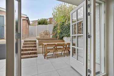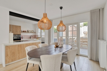 De woonkamer vormt het hart van de begane grond en kenmerkt zich door de ruime en open opzet. Dankzij de grote raampartijen geniet u hier van een prettige lichtinval, wat bijdraagt aan een aangename sfeer. Er is volop ruimte voor het creëren van een comfortabele zithoek en een gezellige eethoek. Via dubbel openslaande deuren heeft u direct toegang tot het terras/de achtertuin, waardoor binnen en buiten op een natuurlijke manier met elkaar verbonden zijn.