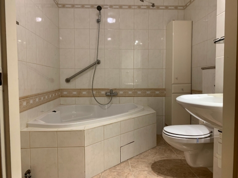 • gemoderniseerde, geheel betegelde badkamer voorzien van hoekbad, toilet, wastafel en 2 wandkastjes